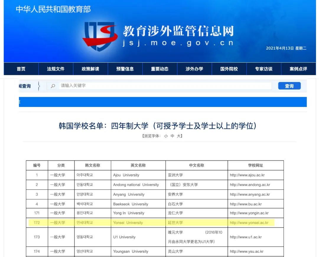 延世是中国教育部认证大学,与包括清华大学、北京大学、香港大学、加州大学伯克利分校等世界上600多所大学签订了留学生交换协议,105个国家的留学生在校就读。